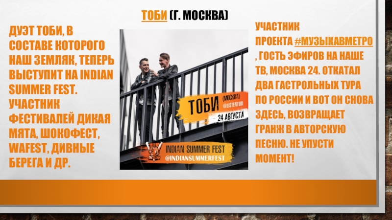 Участник проекта #музыкавметро, гость эфиров на НАШЕ ТВ, Москва 24. Откатал два гастрольных тура по России и вот он снова здесь, возвращает гранж в авторскую песню. Не упусти момент!