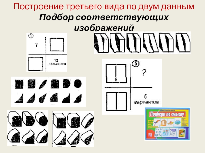 Слайд 11Построение третьего вида по двум данным Подбор соответствующих изображений
