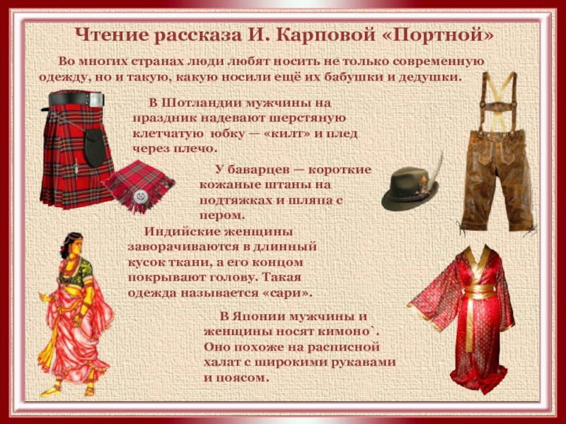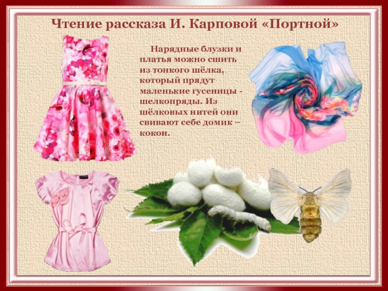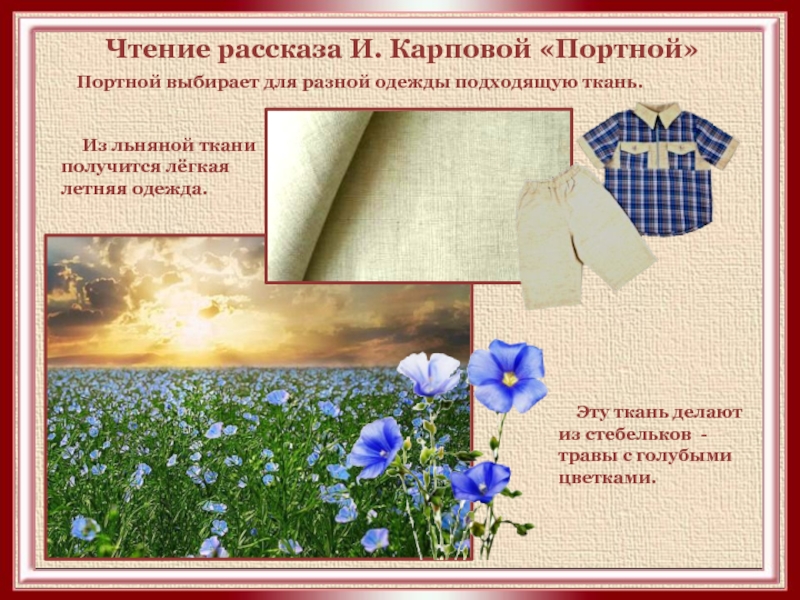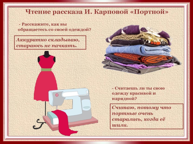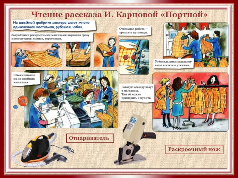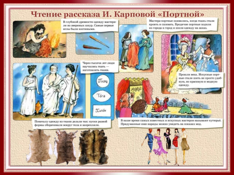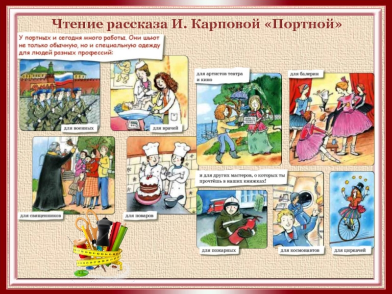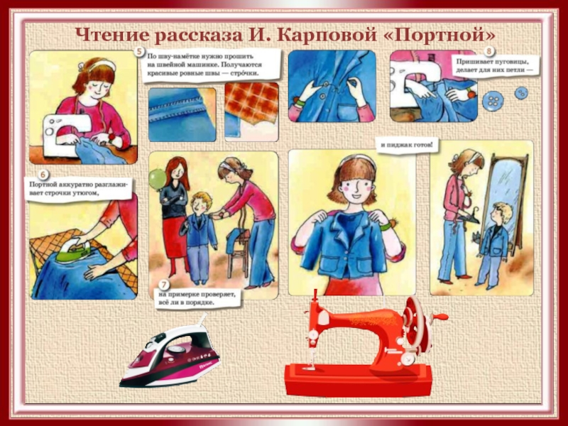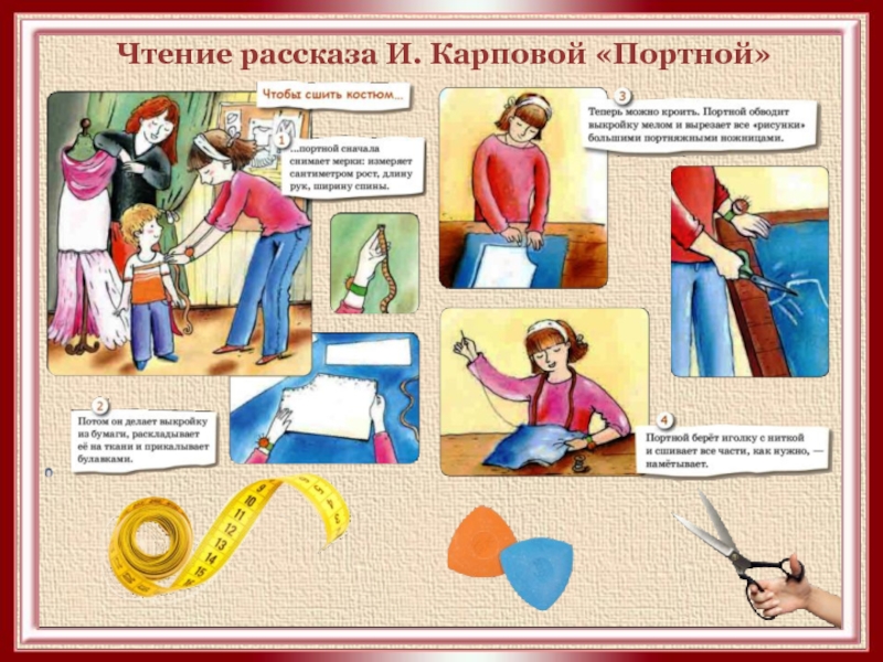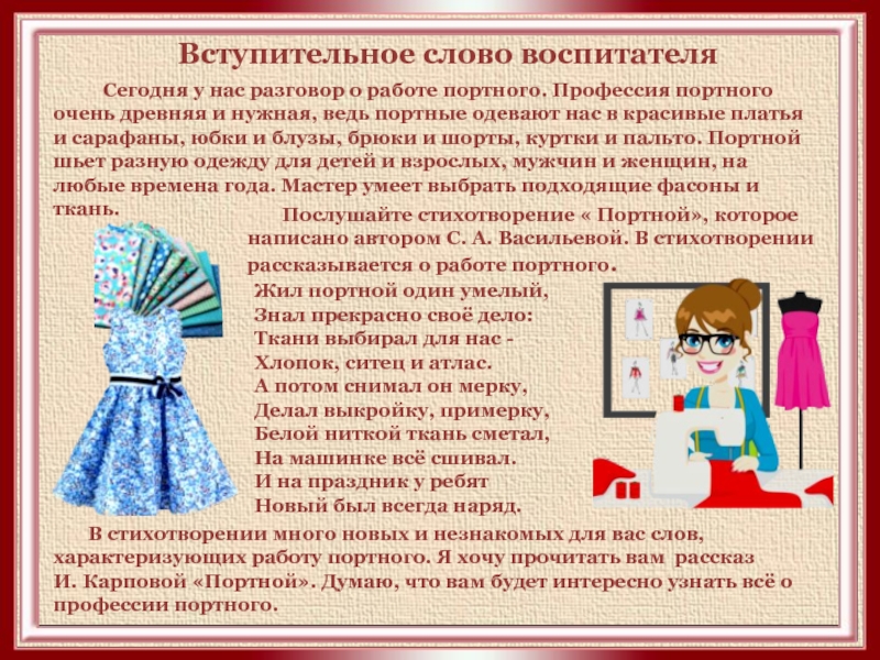 В стихотворении много новых и незнакомых для вас слов, характеризующих работу портного. Я хочу прочитать вам рассказ