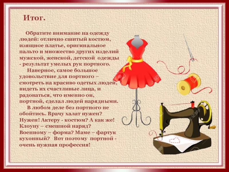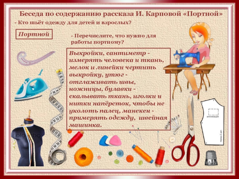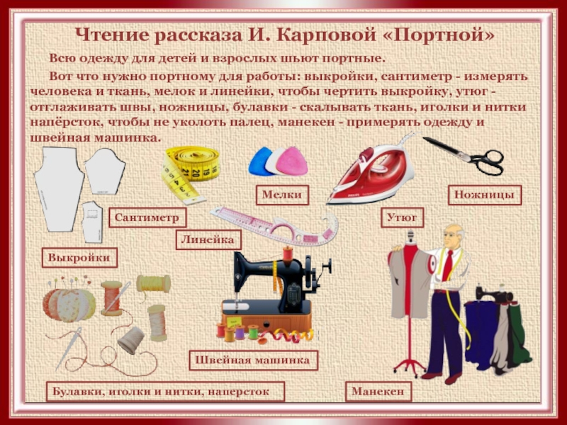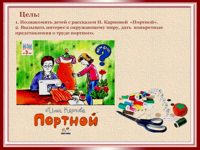 И. Карповой «Портной». Думаю, что вам будет интересно узнать всё о профессии портного.