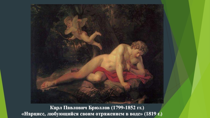 Карл Павлович Брюллов (1799-1852 гг.) «Нарцисс, любующийся своим отражением в воде» (1819 г.)