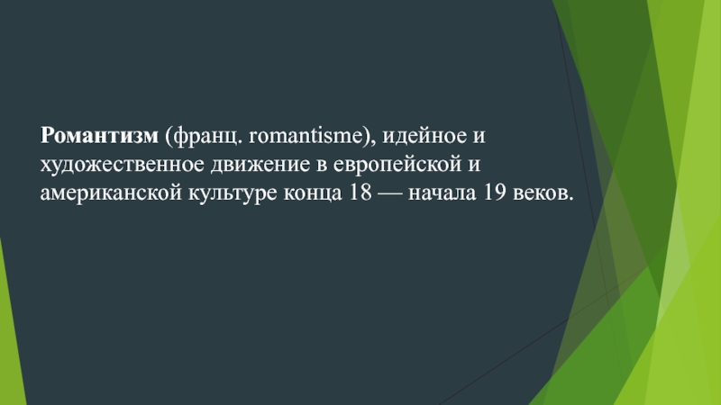 Слайд 2Романтизм (франц. romantisme), идейное и художественное движение в европейской и