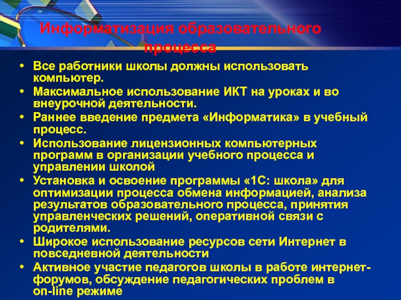 Использование лицензионных компьютерных программ в организации учебного процесса и управлении школой