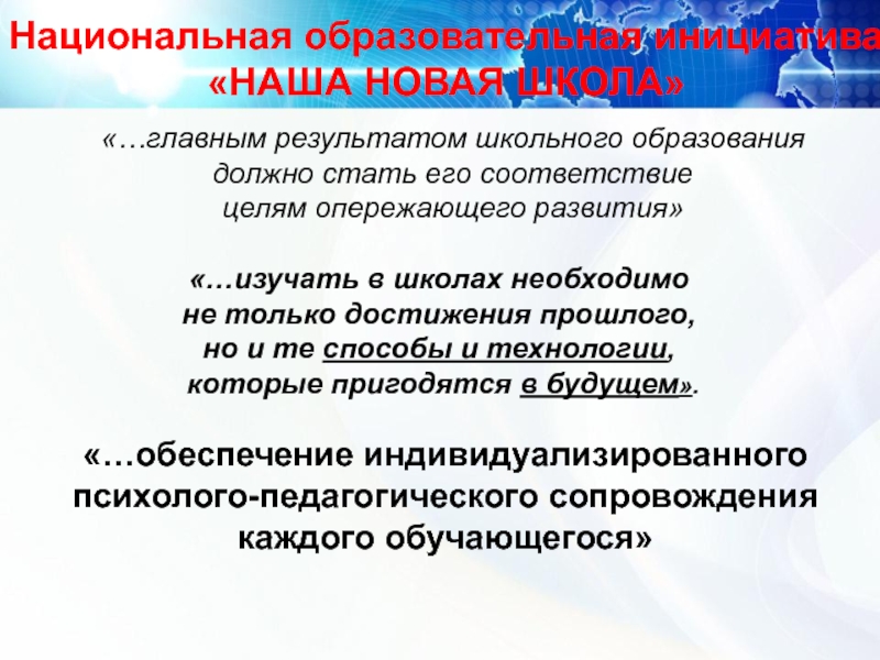 Будущее России, наши успехи зависят от качества образования и здоровья людей, от их стремления к самосовершенствованию и использованию своих навыков и талантов…