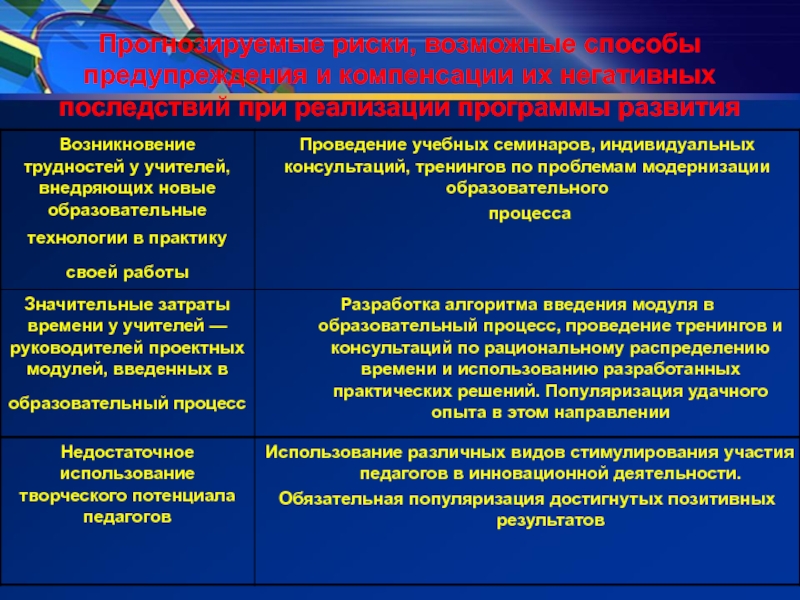 Слайд 87Прогнозируемые риски, возможные способы предупреждения и компенсации их негативных последствий
