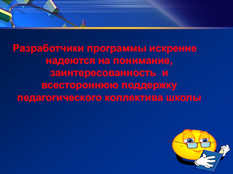 Слайд 96Разработчики программы искренне надеются на понимание, заинтересованность и всестороннюю поддержку