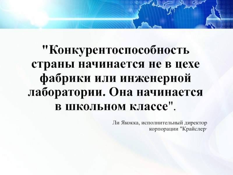 Слайд 5"Конкурентоспособность страны начинается не в цехе фабрики или инженерной лаборатории.