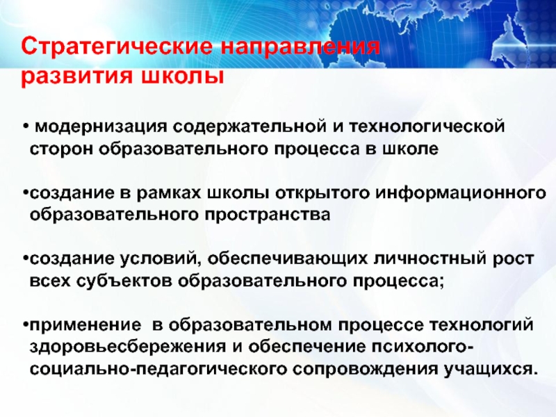 традиционных и инновационных направлений деятельности образовательного учреждения.