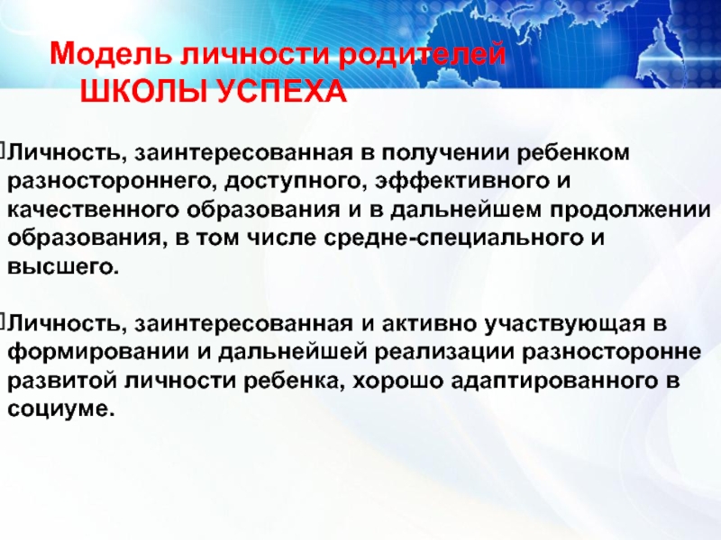Слайд 89Условием развития и становления модели ШКОЛЫ УСПЕХА
