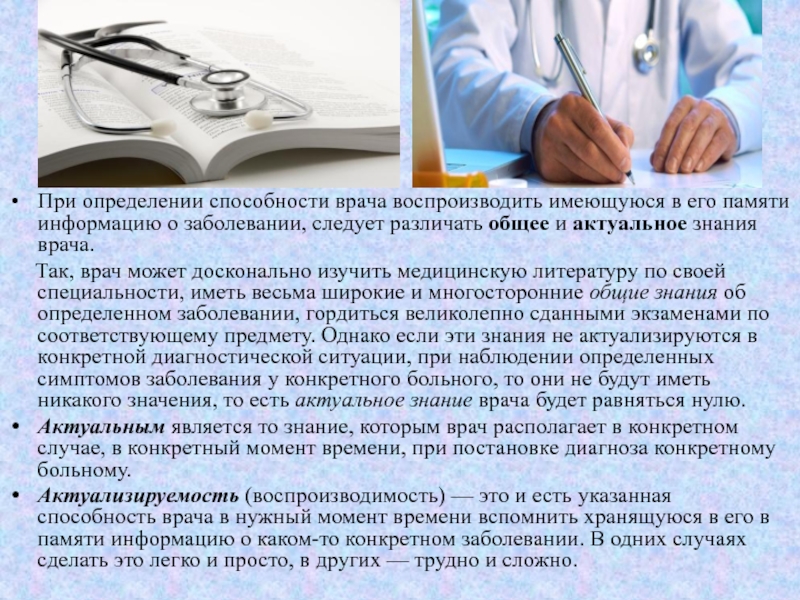 о заболевании, следует различать общее и актуальное знания врача.