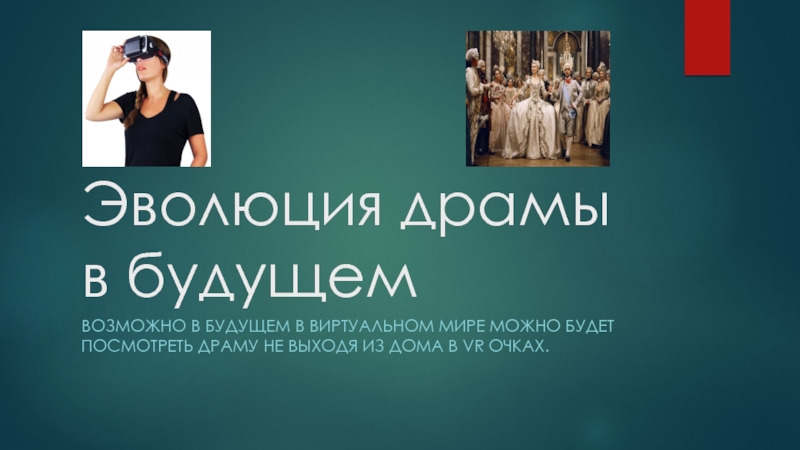Эволюция драмы в будущемВозможно в будущем в виртуальном мире можно будет посмотреть драму не выходя из дома