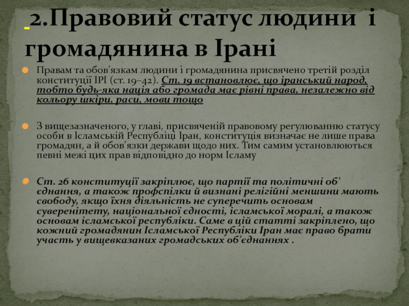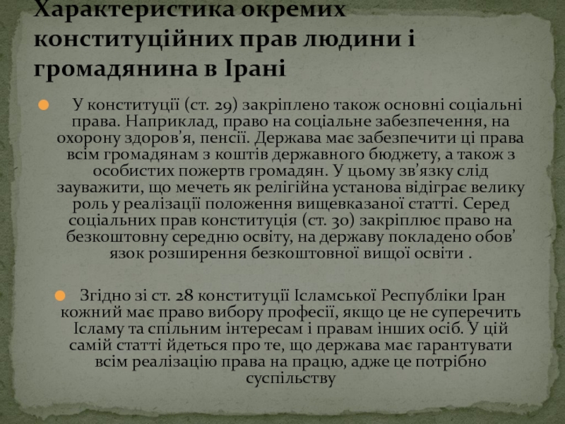 Характеристика окремих конституційних прав людини і громадянина в Ірані