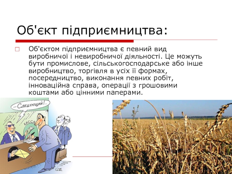 Об'єктом підприємництва є певний вид виробничої і невиробничої діяльності.