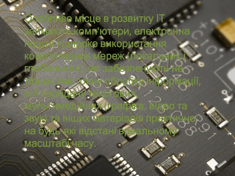 Слайд 3Особливе місце в розвитку ІТ займають комп'ютери, електронна пошта і