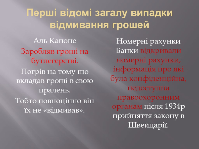 Слайд 2Перші відомі загалу випадки відмивання грошей