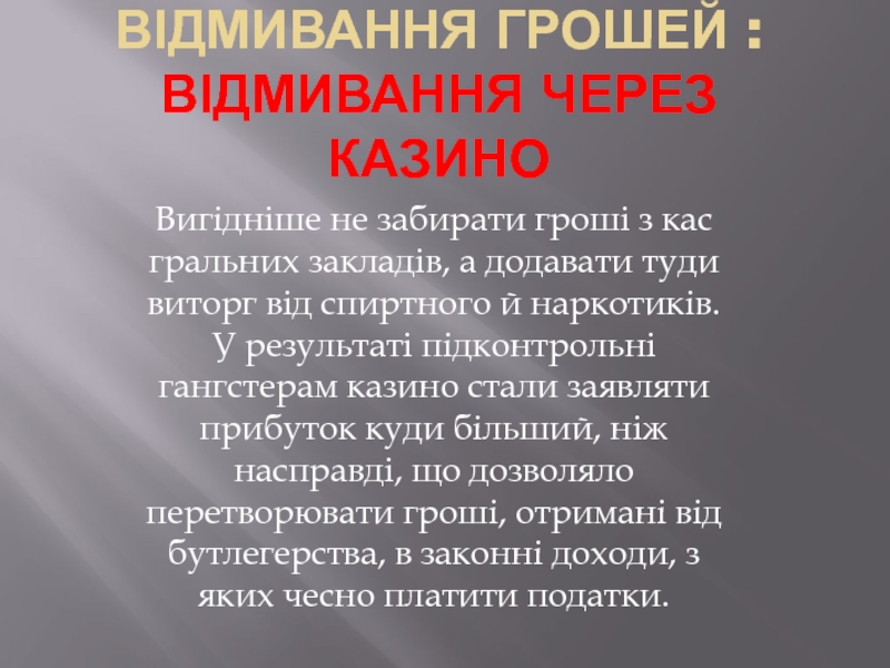 Слайд 4Наступний крок до вдосконалення відмивання грошей : Відмивання через казино
