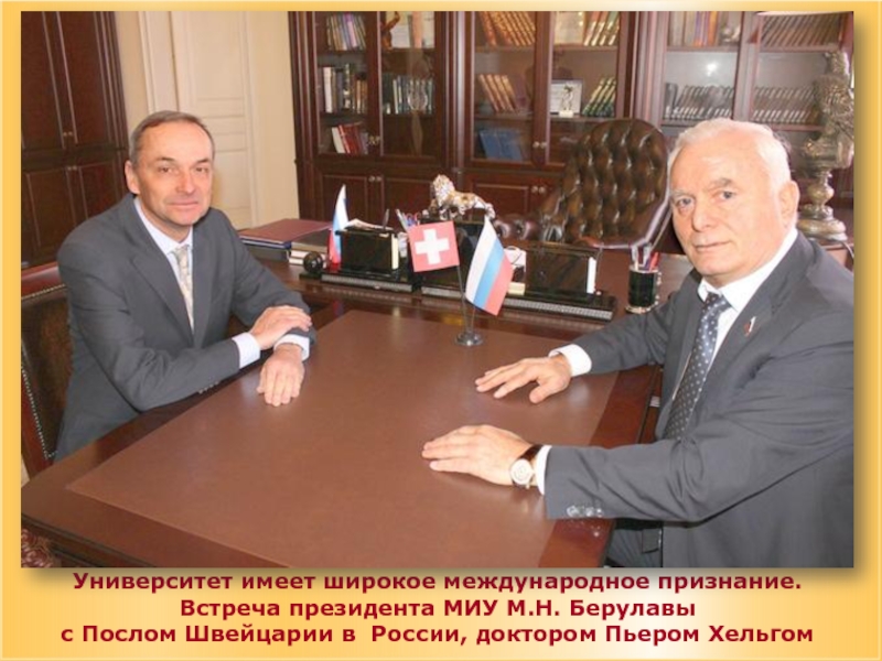 Слайд 31Университет имеет широкое международное признание. Встреча президента МИУ М.Н. Берулавы