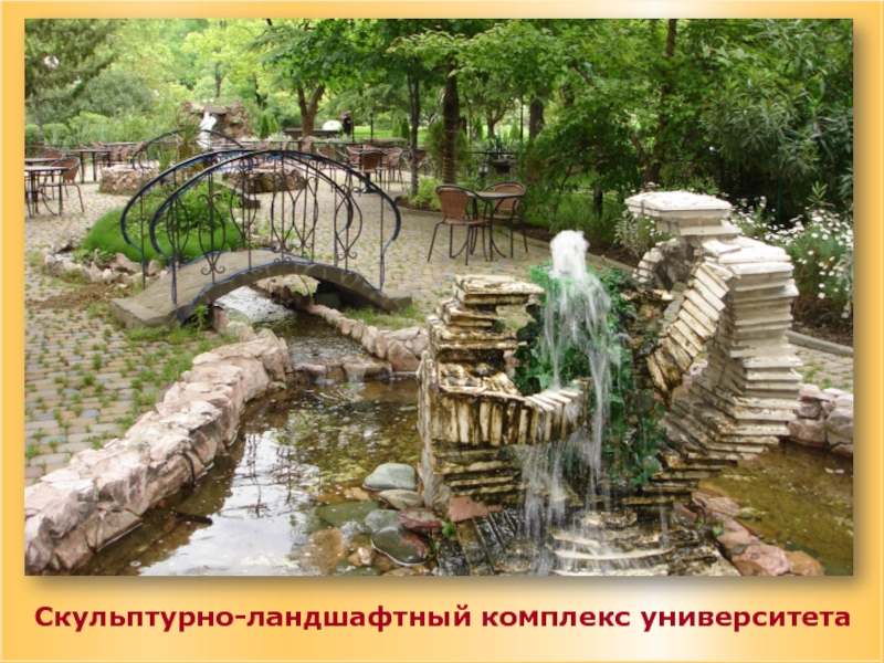 Слайд 10Скульптурно-ландшафтный комплекс университета