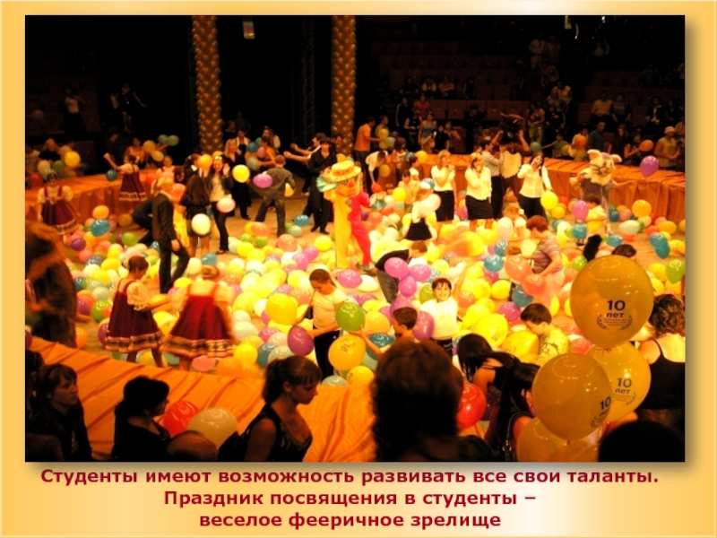 Слайд 62Студенты имеют возможность развивать все свои таланты.