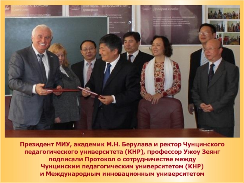 Слайд 34Президент МИУ, академик М.Н. Берулава и ректор Чунцинского педагогического университета