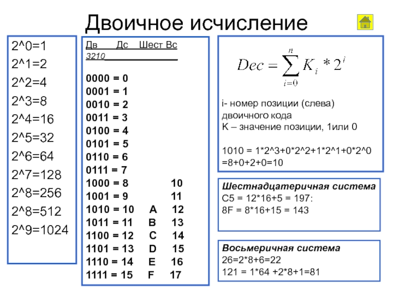 1010 = 1*2^3+0*2^2+1*2^1+0*2^0 =8+0+2+0=10
