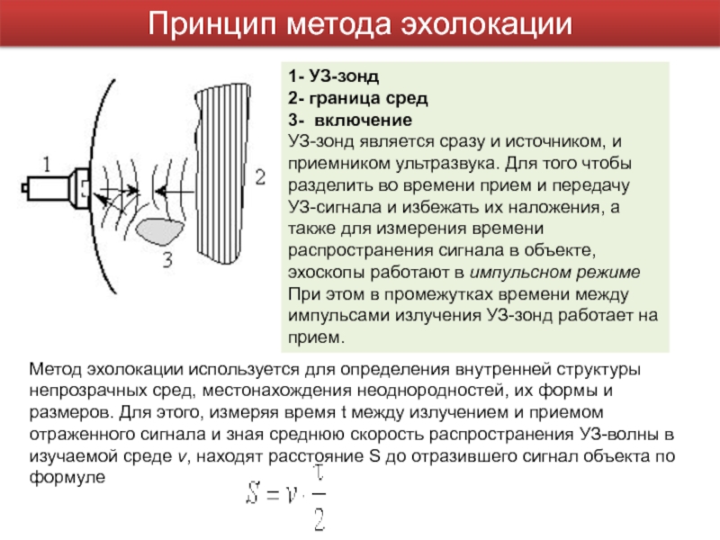УЗ-зонд является сразу и источником, и приемником ультразвука. Для того чтобы разделить во времени прием и передачу УЗ-сигнала и избежать их наложения, а также для измерения времени распространения сигнала в объекте, эхоскопы работают в импульсном режиме При этом в промежутках времени между импульсами излучения УЗ-зонд работает на прием.