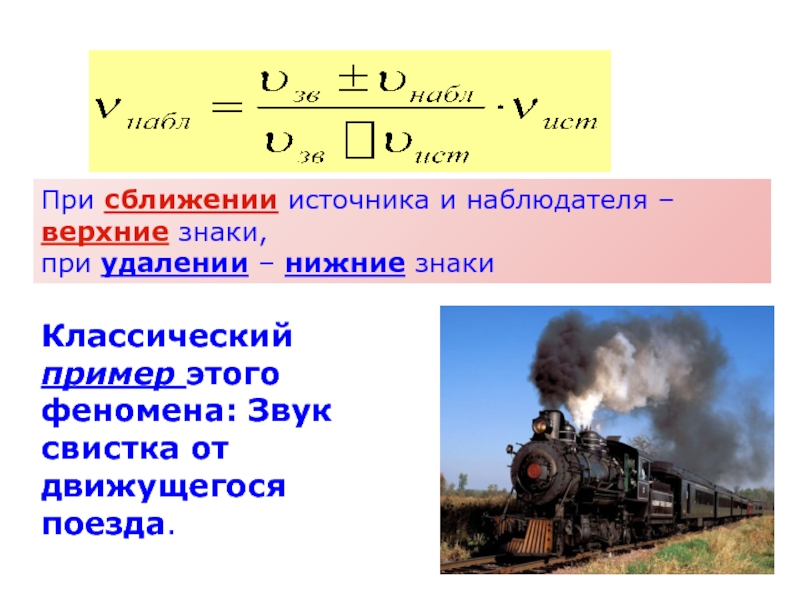 Эффект Доплера заключается в изменении частоты колебаний, воспринимаемых наблюдателем, вследствие движения источника волн и наблюдателя относительно друг друга.