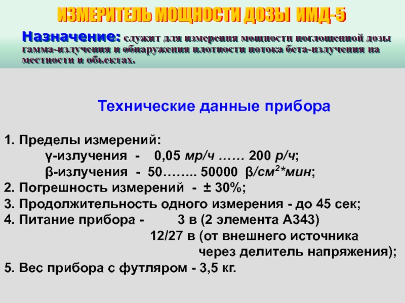 Радиометры-рентгенометры: ИМД-5; ИМД-21(22); ДП-5А,(Б,В); ДП-3Б;