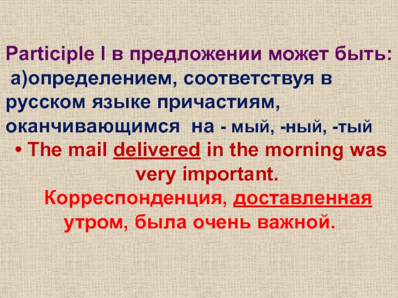 наречия и прилагательного. Соответствует в русском языке причастию и деепричастию.