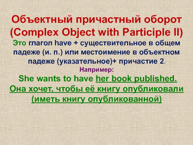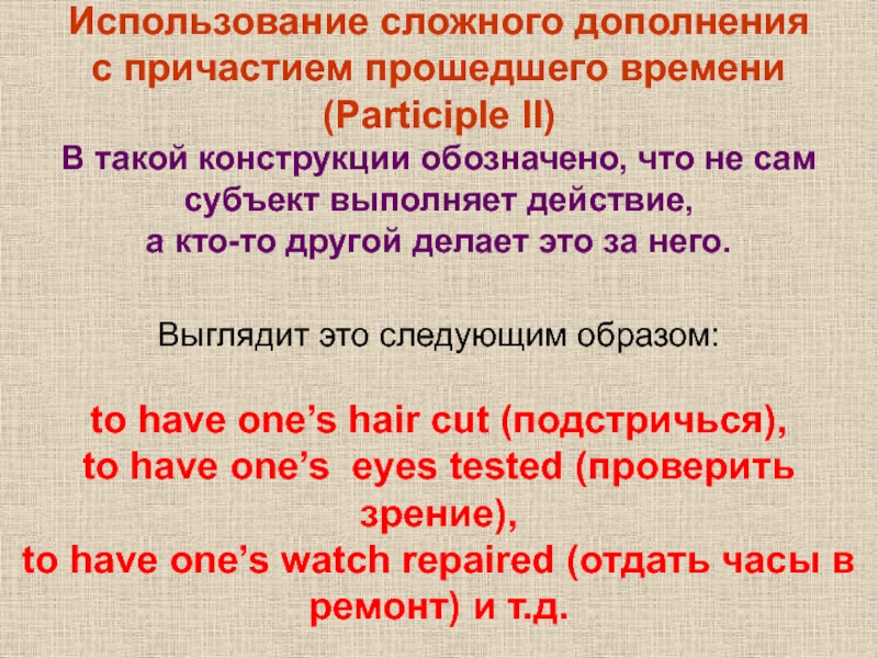 to have one’s watch repaired (отдать часы в ремонт) и т.д.