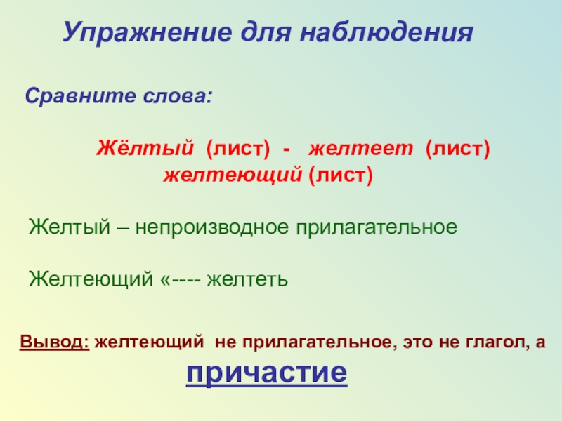 желтеющий (лист)Упражнение для наблюдения