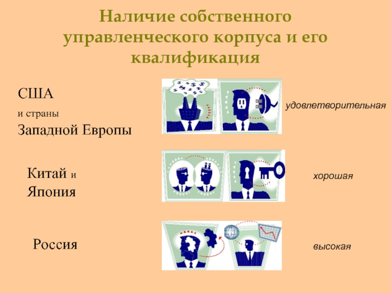 их квалификацияНаличие собственного управленческого корпуса и его квалификация