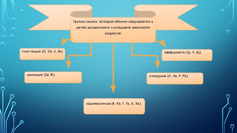Слайд 10Группы звуков, которые обычно нарушаются у детей дошкольного и младшего
