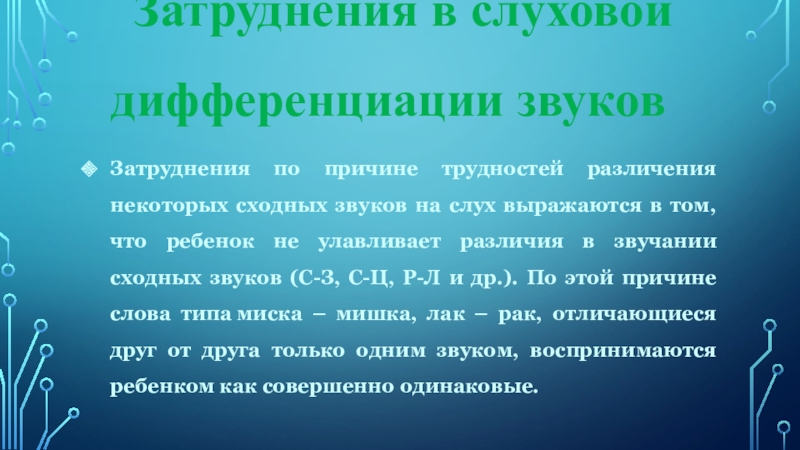 Слайд 6Затруднения в слуховой дифференциации звуков