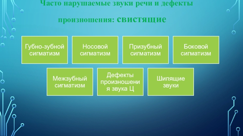 Слайд 12Часто нарушаемые звуки речи и дефекты произношения: свистящие