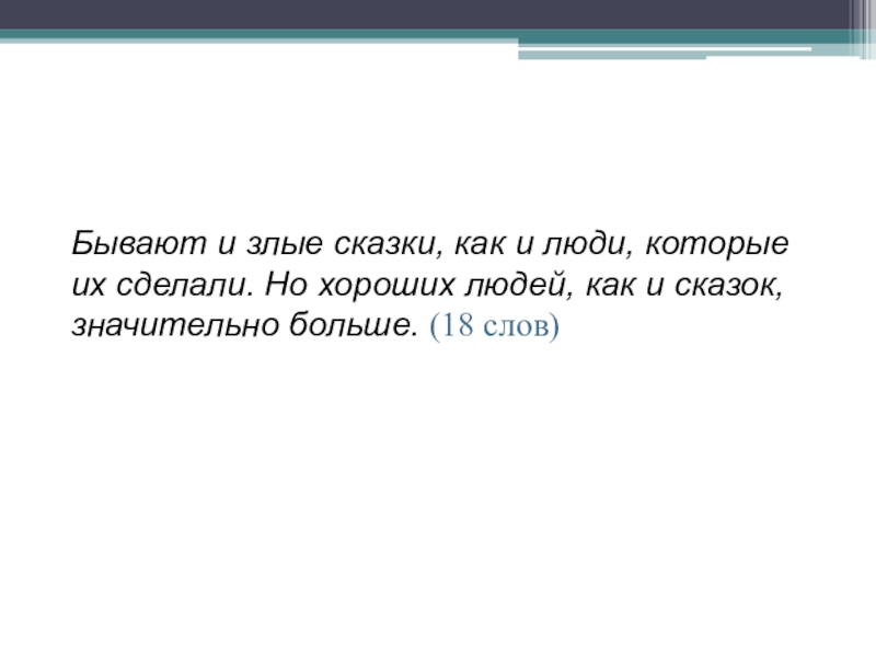 Но хороших людей, как и сказок, значительно больше. (18 слов)