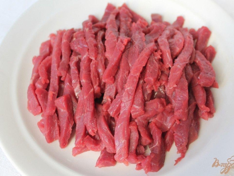 на брусочки вдвое толще, чем бефстроганов, массой 10–15 г.
