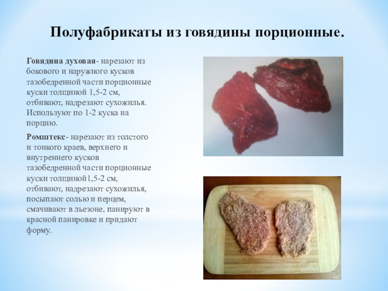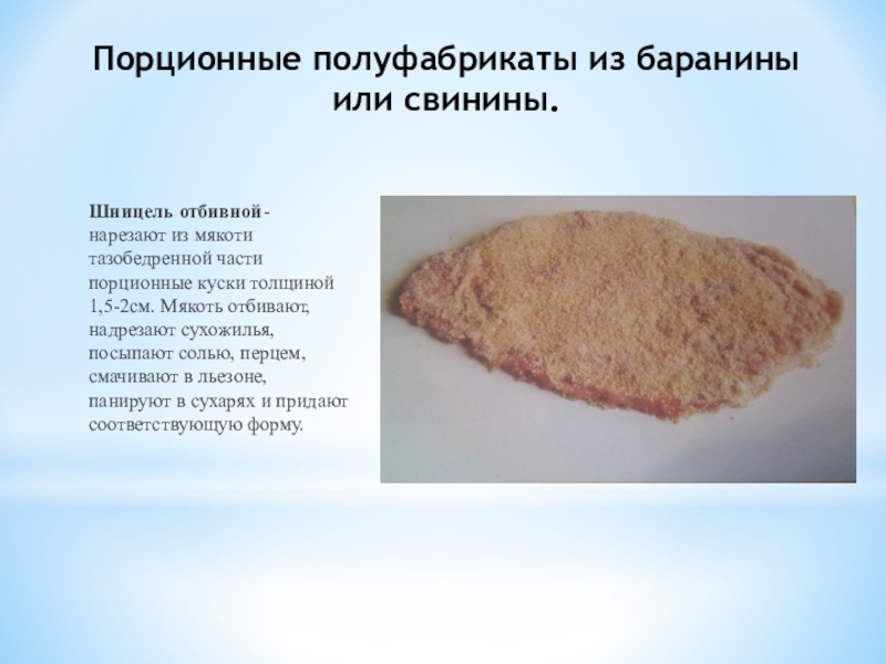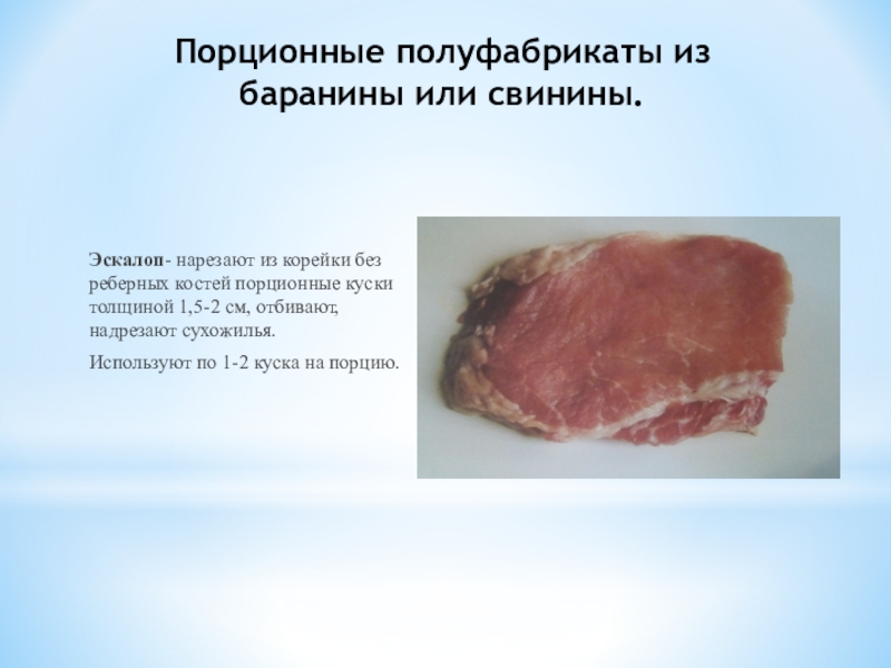 Слайд 15Порционные полуфабрикаты из баранины или свинины.