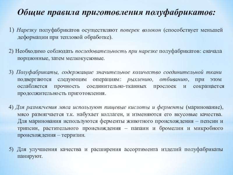 Слайд 3Общие правила приготовления полуфабрикатов: