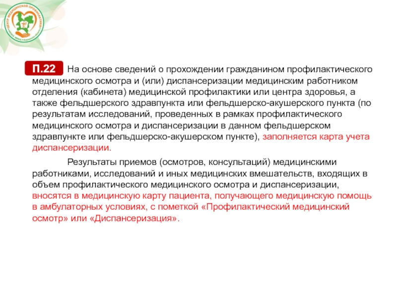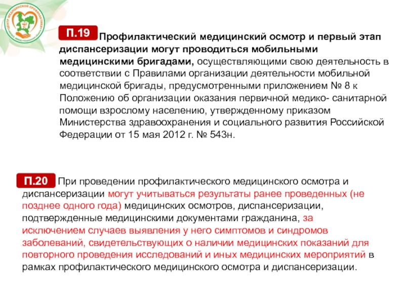 При проведении профилактического медицинского осмотра и диспансеризации могут учитываться результаты ранее проведенных (не позднее одного года) медицинских осмотров, диспансеризации, подтвержденные медицинскими документами гражданина, за исключением случаев выявления у него симптомов и синдромов заболеваний, свидетельствующих о наличии медицинских показаний для повторного проведения исследований и иных медицинских мероприятий в рамках профилактического медицинского осмотра и диспансеризации.