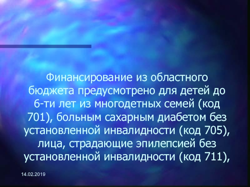 из многодетных семей (код 701), больным сахарным диабетом без установленной