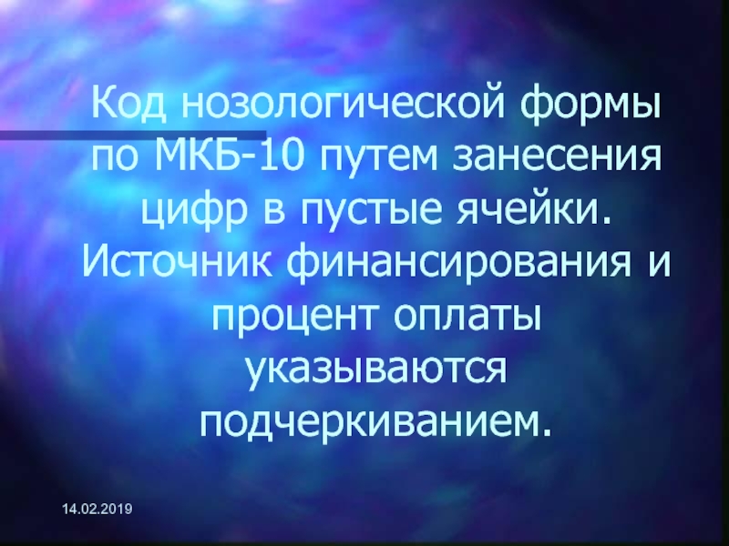 Слайд 14Код нозологической формы по МКБ-10 путем занесения цифр в пустые