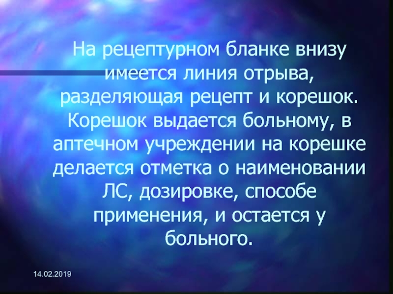 Слайд 20На рецептурном бланке внизу имеется линия отрыва, разделяющая рецепт и