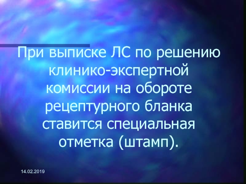Слайд 21При выписке ЛС по решению клинико-экспертной комиссии на обороте рецептурного