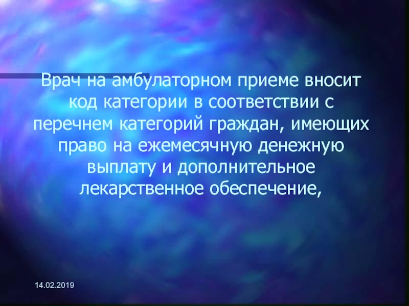 Слайд 13Врач на амбулаторном приеме вносит код категории в соответствии с