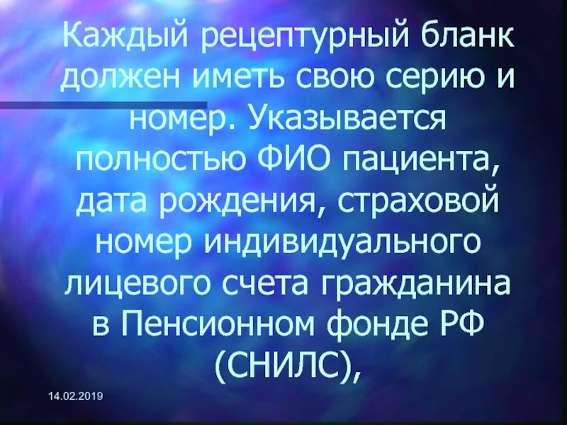 Слайд 15Каждый рецептурный бланк должен иметь свою серию и номер. Указывается
