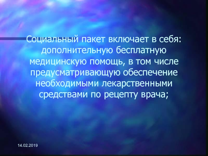Слайд 4Социальный пакет включает в себя:дополнительную бесплатную медицинскую помощь, в том