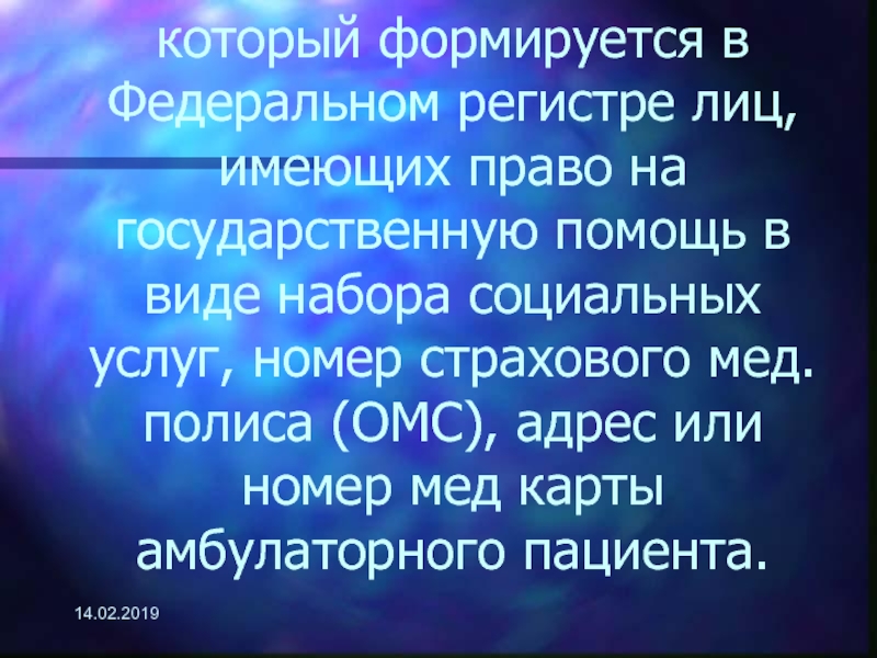 Слайд 16который формируется в Федеральном регистре лиц, имеющих право на государственную