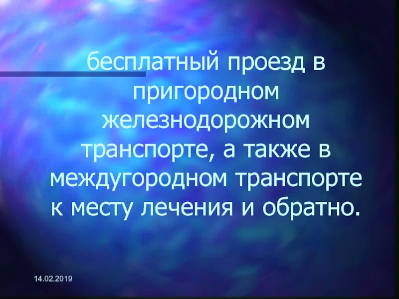 Слайд 6бесплатный проезд в пригородном железнодорожном транспорте, а также в междугородном