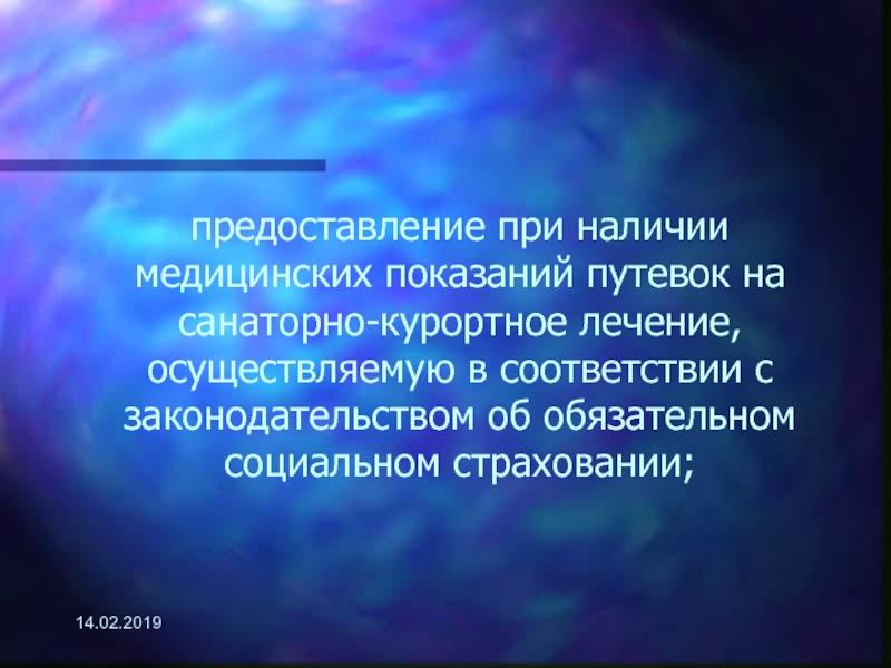 Слайд 5предоставление при наличии медицинских показаний путевок на санаторно-курортное лечение, осуществляемую